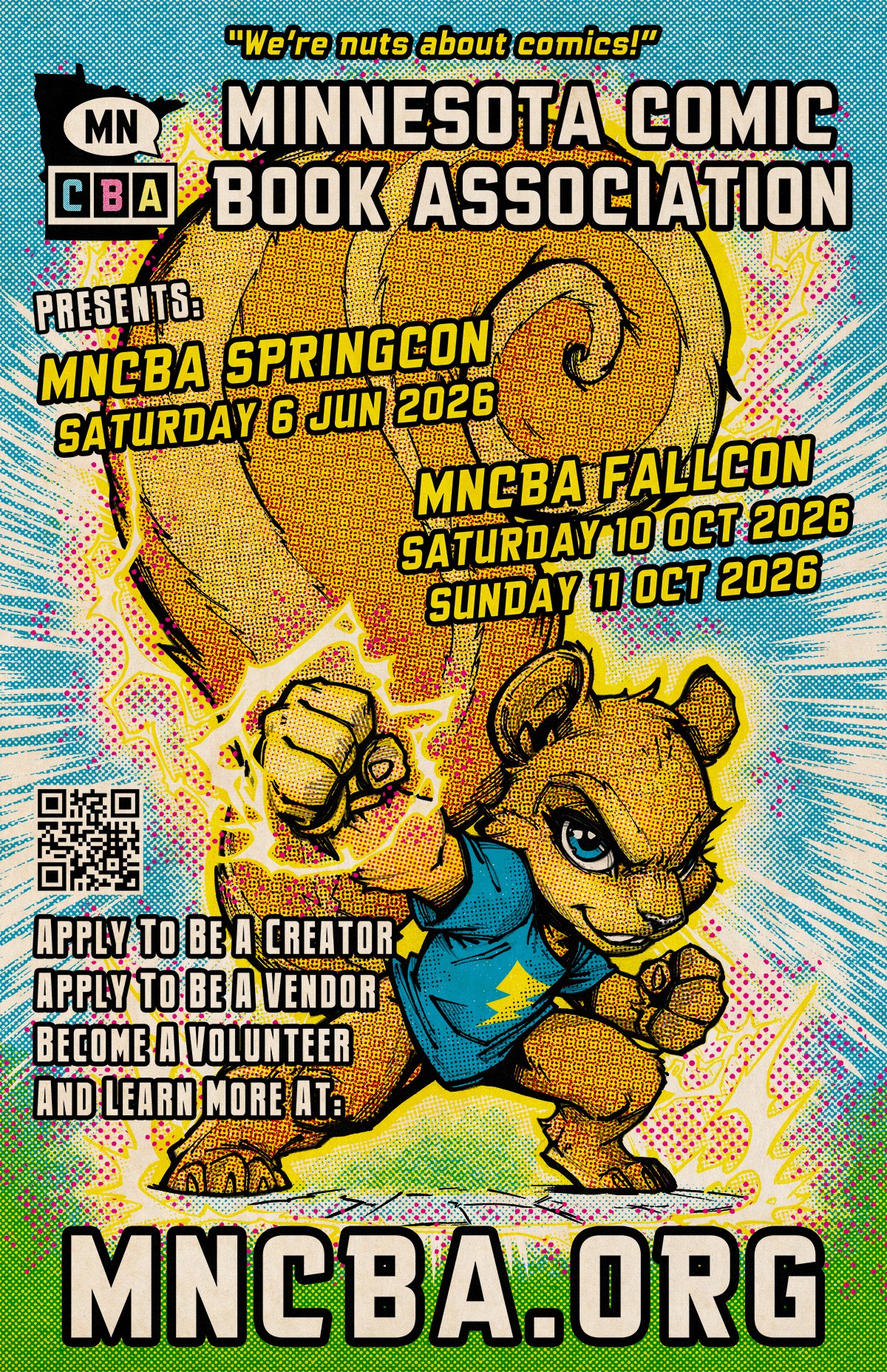 MNCBA Spring Con Minnesota State Fairgrounds 1265 Snelling Avenue North Falcon Heights, MN 55108 10-5 SpringCon and FallCon shows are Minnesota’s largest conventions focused on comic book creators and vendors, featuring both local and out-of-state dealers for the largest selection possible. Admission $10.00. Kids 9 & under free.